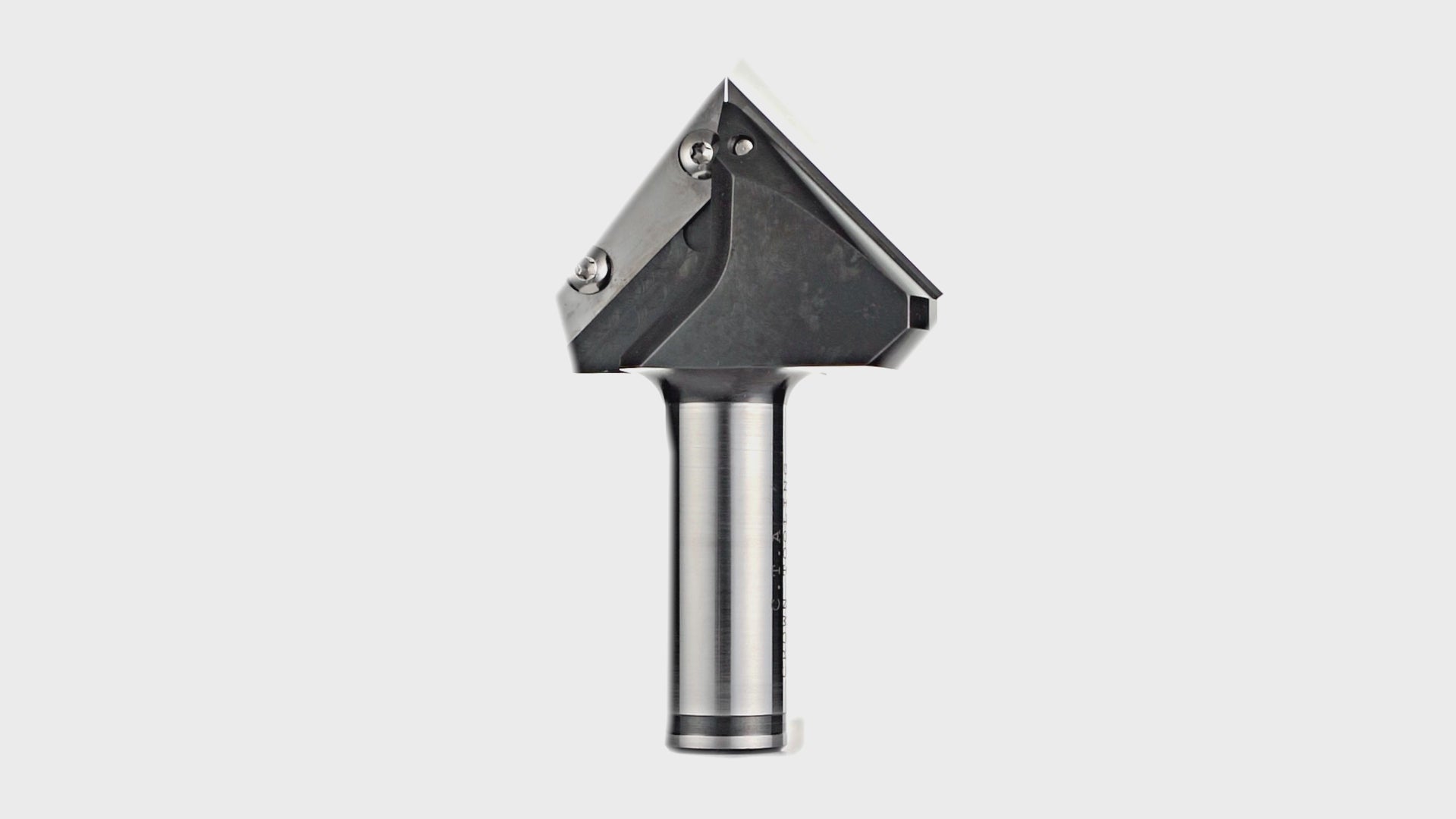 Introducing our 90° Sharp Corner Tool. This tool is designed to machine a 45-degree beveled edge or mitered edge. It's commonly used to profile a 45-degree bevel on a Shaker Door, machine miter joins on your CNC, or to machine V Groove lines (VJ). This is a fantastic tool to add to your collection as it has a great deal of uses.